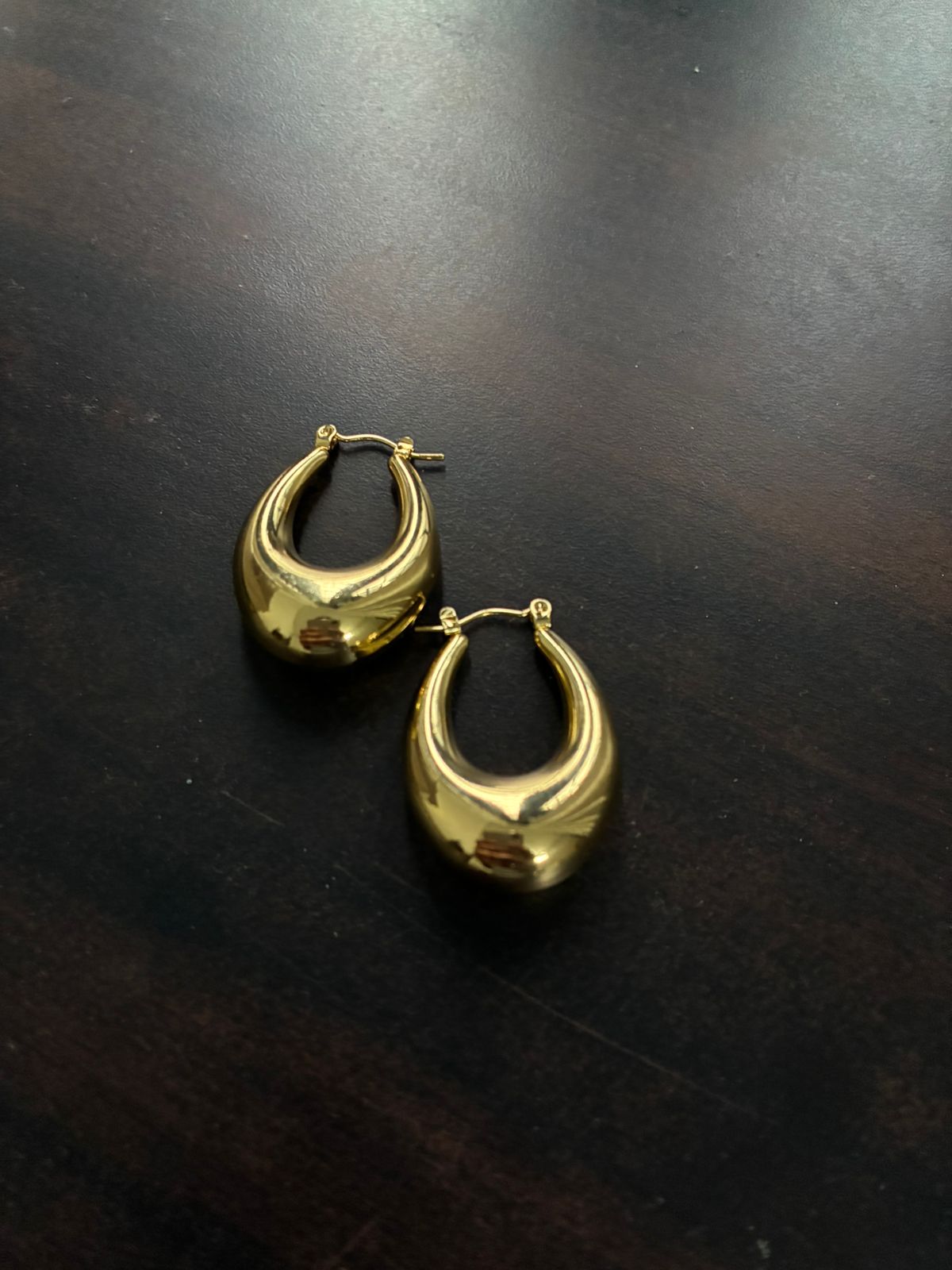 Sleek and sculpted, these crescent-shaped gold hoops blend elegance with modern minimalism. Their mirror-like finish adds a touch of luxury to any outfit. Made with anti-tarnish coating, these earrings are built to shine for years