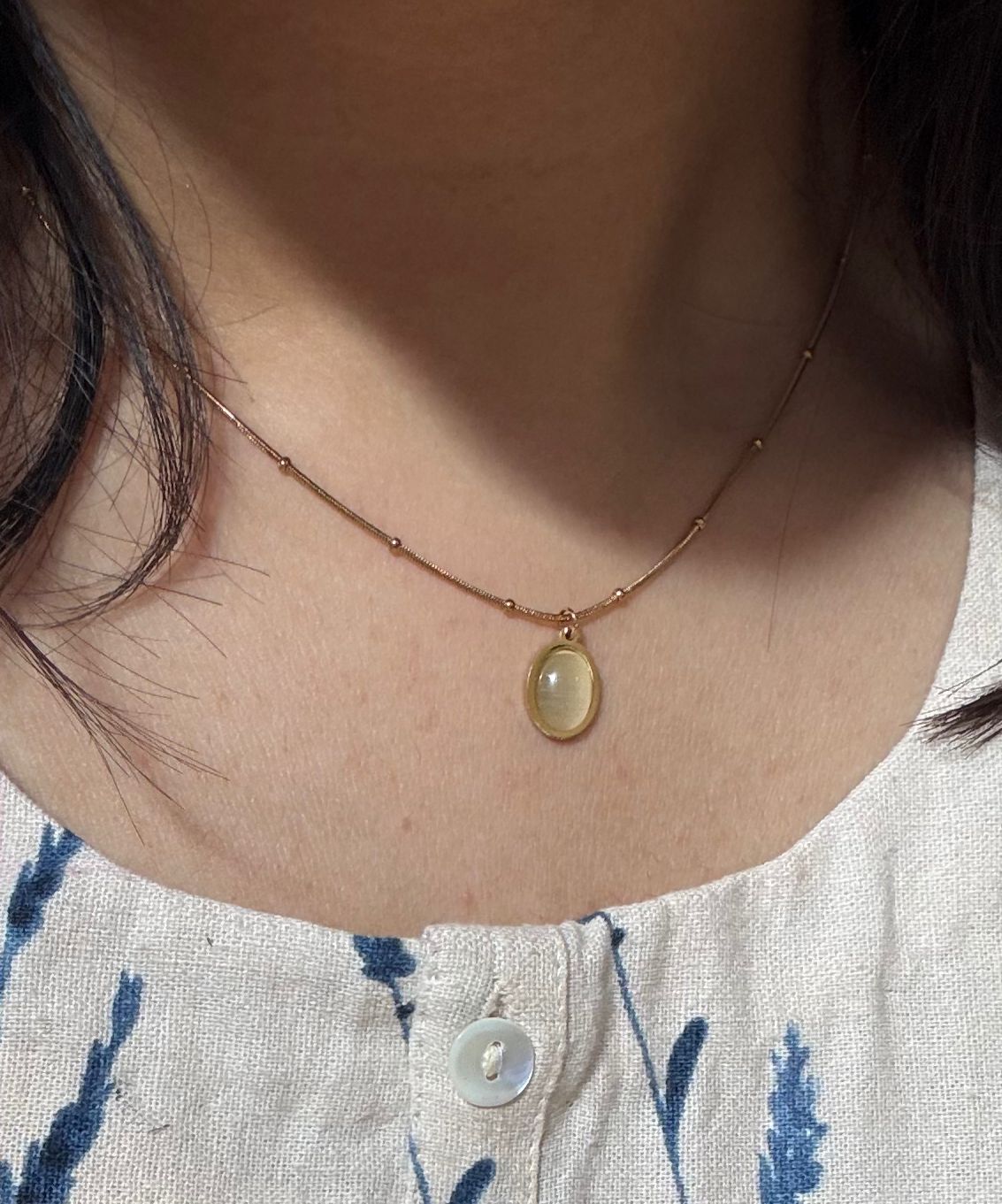 Delicate and dreamy, Moonlit Petal is a graceful gold chain holding a soft oval pearl-like charm, reminiscent of moonlight on a blooming garden. Its subtle beauty makes it ideal for everyday wear or breezy brunches. Plus, it’s anti-tarnish and waterproof, so it stays as radiant as you, no matter where you go.